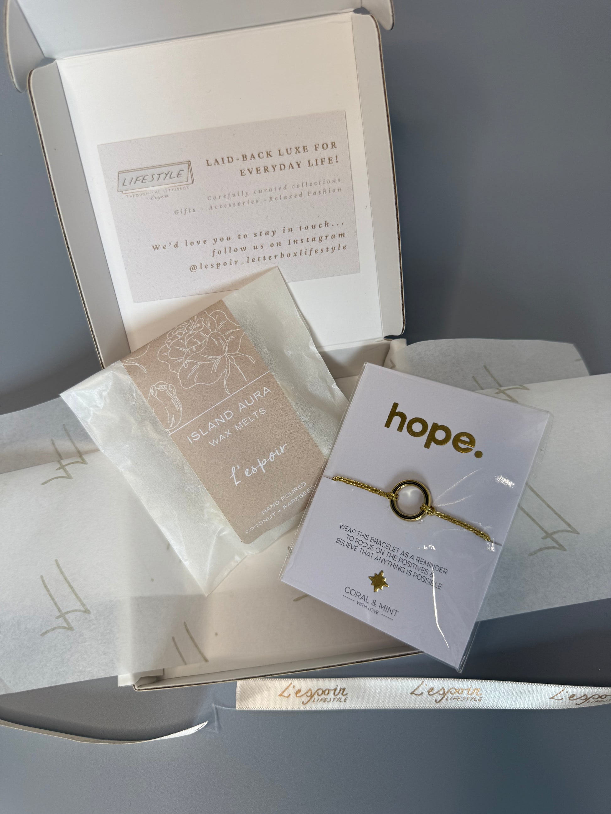 Sometimes, the most meaningful gifts aren't the biggest - they're the ones that carry a message. A Little Bit of L'espoir is our signature gift box, inspired by the French word for Hope - a sentiment at the heart of my brand.